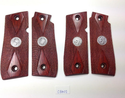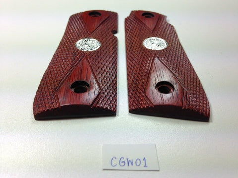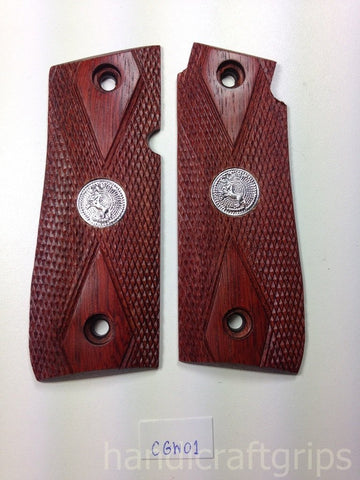 New Colt Government .380 Checkered Hardwood Wood with Silver Medallions #CGW01