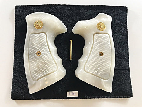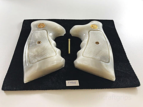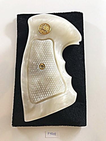 New Colt Python Grips I/ E I E Frame Checkered White Pearl Resin Gold Medallions Handmade Handcraft Birthday New year Christmas Gift Sport For Men Man by Handicraftgrips #Pyr02