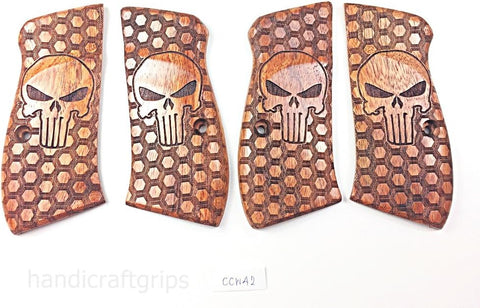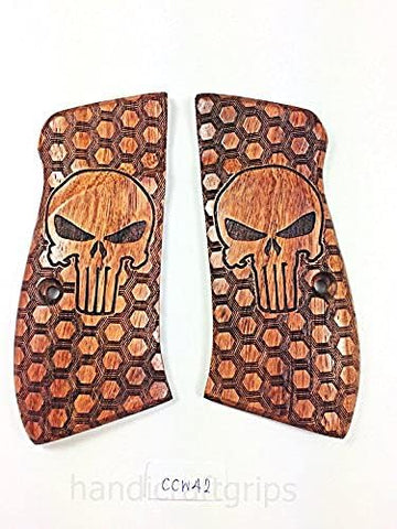 New Cz75 Cz85 CZ 75 85 Grips Cz 75/85 Compact Size Hardwood Wood Checkered Finger groove Handmade CZ P-01 CZ P-06 Beautiful Laser Lazer Skull Handcraft Sport for Men Birthday Gift #Ccw42