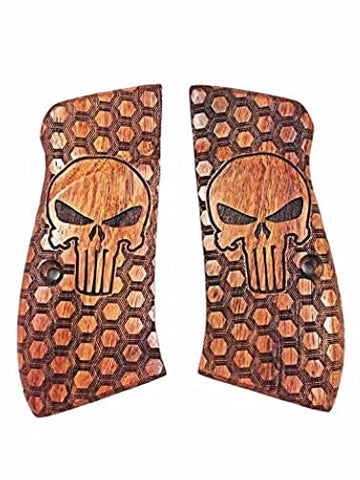 New Cz75 Cz85 CZ 75 85 Grips Cz 75/85 Compact Size Hardwood Wood Checkered Finger groove Handmade CZ P-01 CZ P-06 Beautiful Laser Lazer Skull Handcraft Sport for Men Birthday Gift #Ccw42