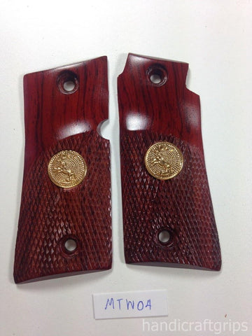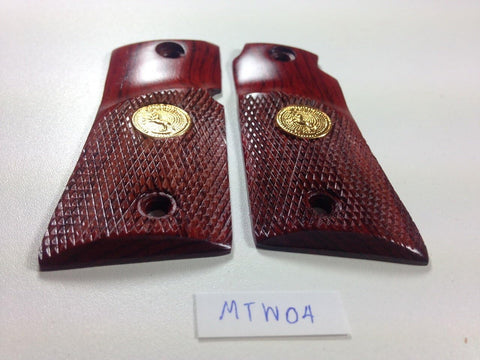 New Grips for Colt Mustang Checkered Gold Medallions pocketlite Pistol Hardwood Handmade Grips #MTW04