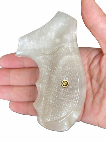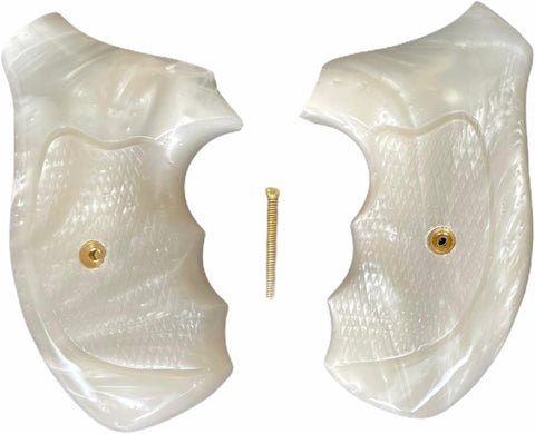 New Grips Rossi small frame round butt grips R352 R461 R462 six shot revolver chambered in .38 Special or .357 Magnum Grips Checkered White Pearl Resin Polymer Polyester Handcraft Handmade #RRR01