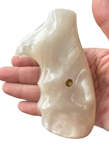 New Rossi Small Frame Square Butt Revolver Grips 67 68 69 71 351 511 515 518 720 971 972 Finger Groove Smooth White Pearl Resin Polymer Polyester Handmade Birthday Newyear Christmas Gift #RSR04
