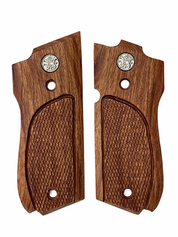 NEW Smith and Wesson S&W Model 39, 52, 439, 539, 639 , 9 Mm, Round Butt Grips Hardwood Checkered Handmade #S3W03