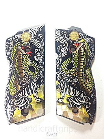 NEW Smith and Wesson S&W Model 39 52 439 539 639 9 Mm. Round Butt Grips Hardwood Wood Mother of Pearl Inlay Smooth Handmade Handcraft Gift Sport for men Man Birthday Newyear Christmas #S3M02