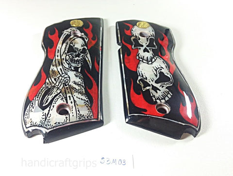 NEW Smith and Wesson S&W Model 39 52 439 539 639 9 Mm. Round Butt Grips Hardwood Wood Mother of Pearl Inlay Smooth Handmade Handcraft Gift Sport for men Man Birthday Newyear Christmas #S3M03