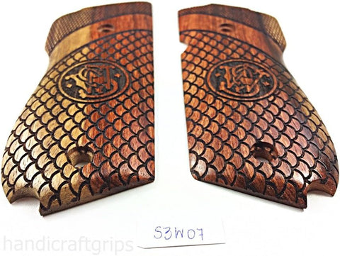 NEW Smith and Wesson S&W Model 39, 52, 439, 539, 639 , 9 Mm, Round Butt Grips Hardwood Wood Smooth Handmade Handcraft Gift Sport for men Skull birthday Newyear Christmas #S3W07