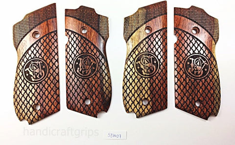 NEW Smith and Wesson S&W Model 39, 52, 439, 539, 639 , 9 Mm, Round Butt Grips Hardwood Wood Smooth Handmade Handcraft Gift Sport for men Skull birthday Newyear Christmas #S3W07