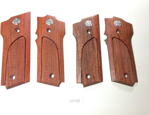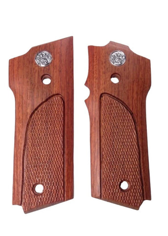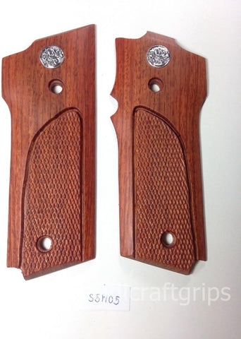 New Smith and Wesson S&W Model 59 459 659 9 Mm Grips Hardwood Wood Checkered Handmade Handcraft Gift Sport for Men Silver Medallions #S5W05