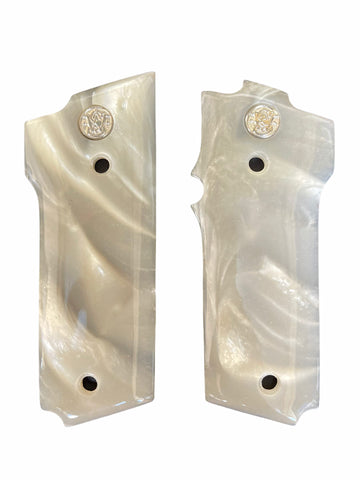 New Smith and Wesson S&W Model 59 459 659 9 Mm Grips White Pearl Resin Silver Medallions Handmade Handcraft Birthday Newyear Sport for Men Man #S5R04