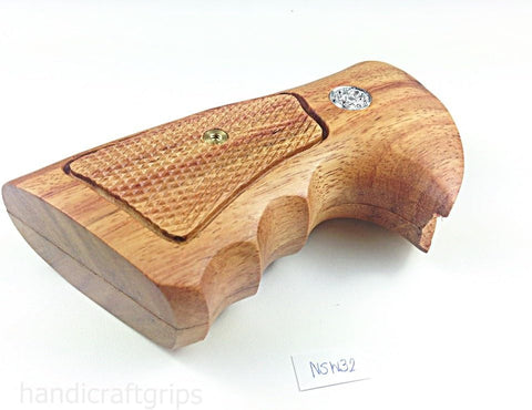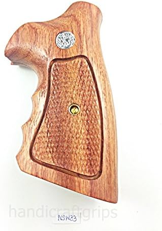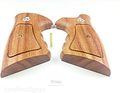 New Smith & Wesson S&W N Frame Square Butt Grips Silver Medallions Checkered Finger Groove Hardwood Hard Wood Handmade Beautiful Sport for Men Birthday Newyear Christmas Gift #Nsw32