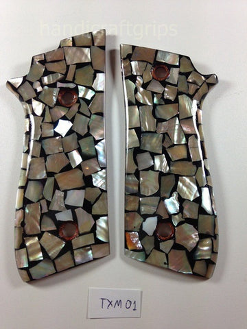 New Taurus Pt92 Pt99 Pt100 Pt101 Non- Decocker PT pt 92 99 100 101 Mother of Pearl Inlay Hardwood Wood Smooth Grips grips Handmade #TXM01