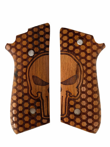 New Taurus Pt92 Pt99 Pt100 Pt101 Skull Non- Decocker PT pt 92 99 100 101 Lazer Hardwood Hard Wood Lazer Checkered Handmade Beautiful Handcraft Special Design Grips Sport for Men Birthday Gift #Txw03