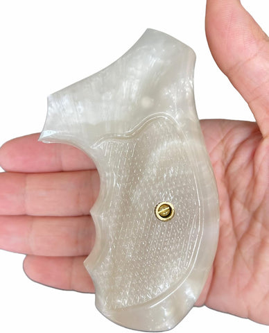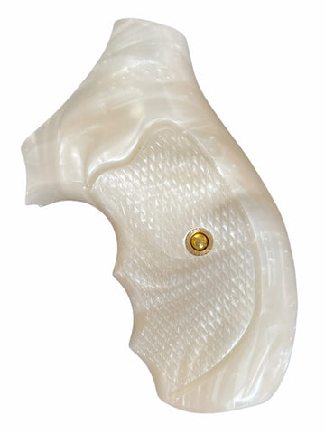 RRR01 ## New Grips Rossi small frame round butt grips R352 R461 R462 six shot revolver chambered in .38 Special or .357 Magnum Beautiful Checkered White Pearl Resin Handmade by handicraftgrips
